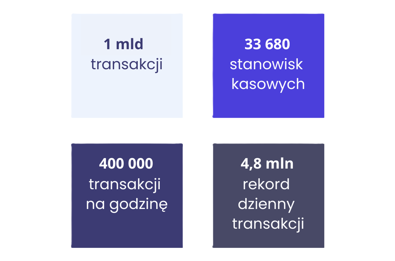 Umożliwia przetwarzanie kilkuset tysięcy transakcji na godzinę, gwarantując płynność operacji i skracając czas oczekiwania klientów.